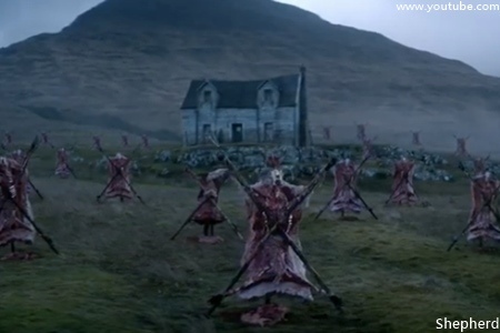 ※牧羊犬和綿羊群被劈開插在木樁令人膽顫心驚,視覺刺激度極高。