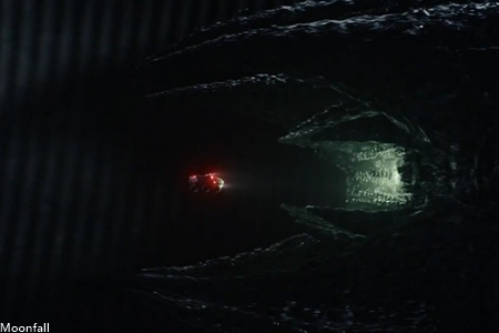 而後喬辛達說服布萊恩和豪斯曼搭乘太空梭出發,同時海嘯侵襲基地使布萊恩之子桑尼和喬辛達之子及其保姆撤離,而後太空梭進入月球內部發現是黑物吸收月球能量造成軌道偏移。